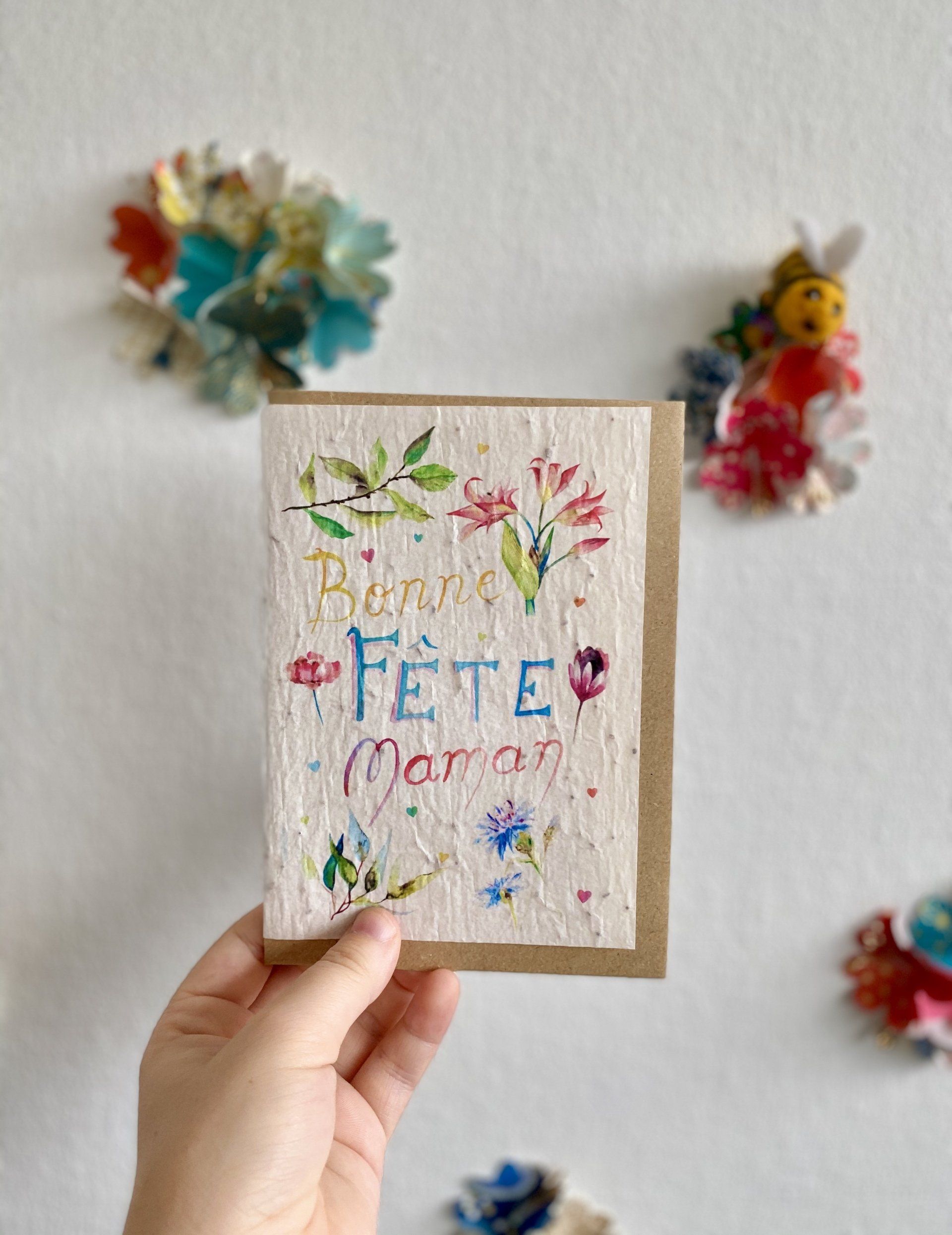 8 bonnes raisons d’envoyer une carte ensemencée à sa maman En France, la fête des mères tombe chaque année le dernier dimanche de mai (ou plus rarement, le premier dimanche de juin si le jour coïncide avec la Pentecôte). Dans la plupart des pays, c’est même un peu plus tôt. Quoi qu’il en soit, mine de rien, le jour J approche et vous cherchez une idée originale pour surprendre votre maman avec une attention particulière. Que diriez-vous de lui envoyer une carte ensemencée ? Planter des cartes, c’est planter du bonheur et ce petit cadeau a tout pour plaire à celle qui restera pour toujours, la femme de votre vie… 1. Le plaisir de recevoir une carte à planter dans son courrier Ouvrir sa boîte aux lettres et y trouver une enveloppe qui ne contient ni facture ni offre commerciale, ça devient plutôt rare et ça fait toujours plaisir, non ? Imaginez en plus le sourire qu’affichera votre maman quand elle reconnaîtra votre écriture et découvrira dans l’enveloppe, une carte artisanale, décorée avec talent par une super illustratrice… Quel que soit votre style (et le sien), romantique ou contemporain, tons pastels ou couleurs vives, le plus dur sera de choisir, parmi tous les modèles, la carte la plus sympa qui lui plaira à coup sûr. 2. Fêter les mamans avant l’heure avec une carte originale Avec une carte envoyée par la poste, la fête des mères se célèbre en avance, puisque le facteur ne passe pas le dimanche. Si vous déjeunez avec elle le jour J, votre maman sera ravie de voir que vous avez pensé à sa fête bien avant. Et si par contre, vous oubliez de l’appeler, au moins, vous aurez fait votre B.A… Mais attention à ne pas vous y prendre à la dernière minute ou votre carte risquerait d’arriver après la date fatidique ! 3. Comme un bouquet à retardement Vous vous souvenez de la publicité pour les bonbons mentholés, vous savez, le double effet… Eh bien une carte à planter c’est (presque) la même chose. Pour commencer, il y a la surprise de recevoir une carte originale au courrier. Ensuite, une fois plantée, vient le temps du suspense : quand les graines vont-elles germer, quand les fleurs vont-elles pointer le bout de leur nez, à quoi vont-elles ressembler ? Et puis enfin, au bout de quelques semaines, deuxième surprise, une brassée de fleurs colorées orne ses fenêtres (c'est les voisins qui vont être jaloux...). Re-sourire assuré… 4.Un cadeau de fête des mères à petit prix Comment offrir un joli cadeau original à sa maman sans casser sa tirelire ? Voilà une question que se posent beaucoup d’enfants. Certaines chanceuses recevront la plus belle des surprises : celle que leurs petits bouts auront fabriquée à l’école avec leur maîtresse. Mais les plus grands vous demanderont peut-être une idée. Pourquoi ne pas leur suggérer une carte ensemencée ? Ils pourront même glisser dans l’enveloppe, leur plus beau dessin, un joli poème ou une photo. 5.La mise en bouche avant un beau bouquet Parce que nos chères mamans ont souvent hâte d’être au dimanche de la fête des mères, pourquoi ne pas les faire patienter avec une carte qui, une fois plantée, se transformera en magnifique parterre de fleurs ? Petite astuce : pensez à affranchir votre enveloppe avec un joli timbre de collection ; une délicate attention à laquelle votre maman sera sûrement sensible. Et au moment de choisir son bouquet, vous pourrez ajouter l’une de nos mini-cartes à planter « Maman » ou « Je t’aime ». 6. Encore plus durable qu'un magnifique bouquet Une fois la carte mise en terre, les fleurs des champs fleuriront plusieurs semaines ; votre maman pourra donc en profiter longtemps après son joli bouquet Il faudra juste veiller à maintenir le terreau suffisamment humide le temps que les graines germent, puis à les arroser régulièrement pour assurer le fleurissement pendant toute la belle saison. Et pour le contenant, offrez-lui un joli pot d’ornement dans lequel elle pourra planter sa carte. 7. Des fleurs champêtres pour attirer la faune Les fleurs agissent comme des aimants sur la petite faune des jardins. Elles feront la joie de votre maman en même temps que le bonheur des papillons, abeilles et autres insectes pollinisateurs. Et ça, c’est bon pour la planète. À propos de pollen, les fleurs des champs sont idéales si votre maman a des allergies, puisqu’elle pourra profiter de jolies fleurs d’extérieur sans éternuer à tout bout de champ à la maison ! 8. Les cartes à planter, c’est zéro déchet En parlant de planète, voilà une autre bonne raison d’acheter une carte à planter pour la fête des mères : elles sont 100 % biodégradables, car fabriquées avec un papier à ensemencer naturel fait à base d’amidon, produit en France de manière artisanale, auquel on ajoute les graines non-traitées. Les enveloppes (en kraft), les emballages (mélange d’amidon de maïs et de sucre de canne ou de betterave) et même le sticker sont, quant à eux, entièrement recyclables. Tout ce qu’on aime pour chérir notre maman, sans nuire à l’environnement. Alors, convaincu(e) par l’idée ? Rendez-vous vite dans ma boutique en ligne ou chez l’un des revendeurs des Cartes de Lulu pour choisir la carte à planter originale qui plaira à votre maman. Et tant que vous y êtes, si vous en profitiez pour en acheter une aussi pour belle-maman…