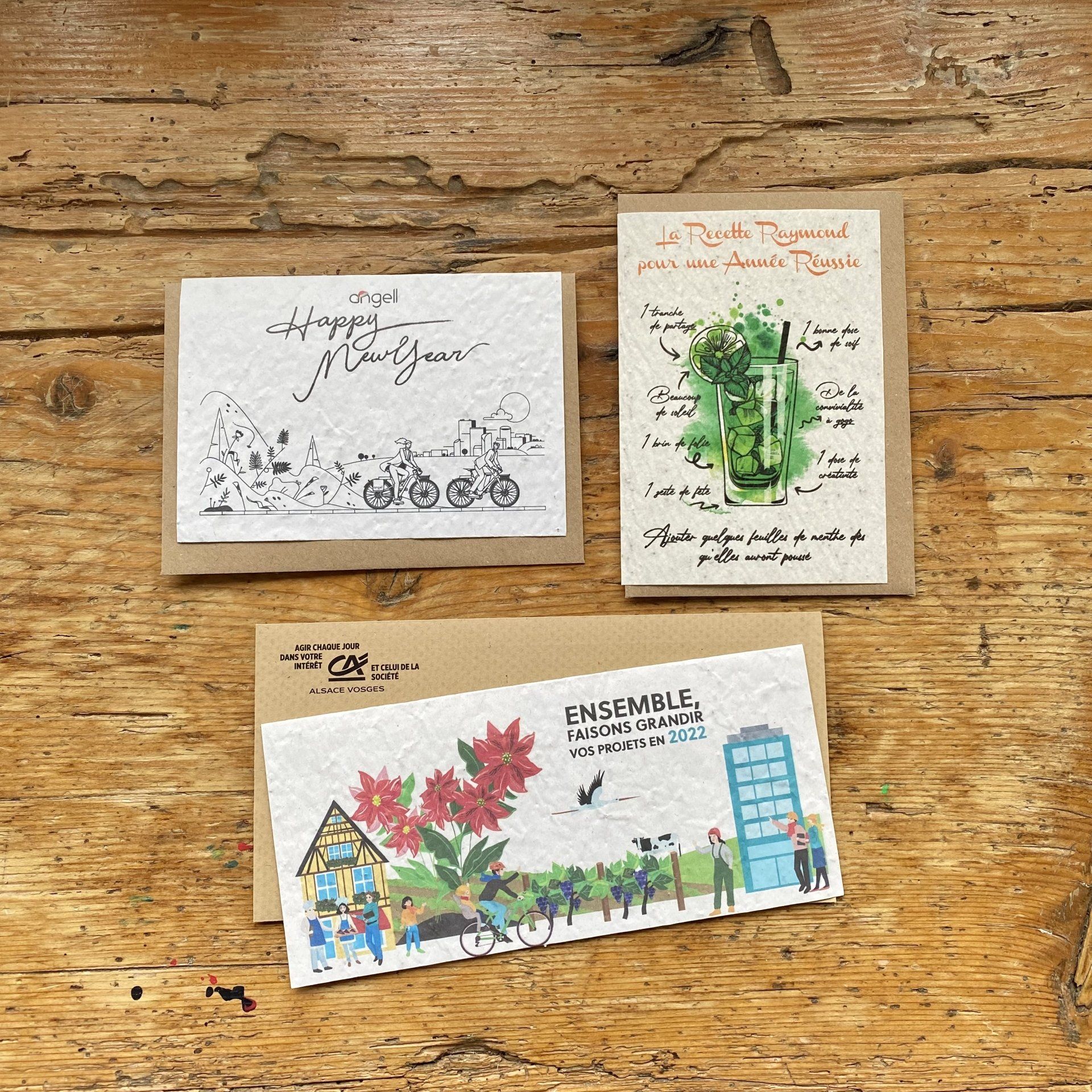 Les cartes de vœux sont une tradition dans le monde professionnel. Mais au lieu d'une carte classique, pourquoi ne pas opter pour une version écologique et pleine de sens ? Une carte